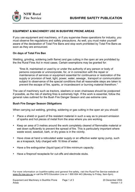 Bushfire Safety Publication Nsw Rural Fire Service
